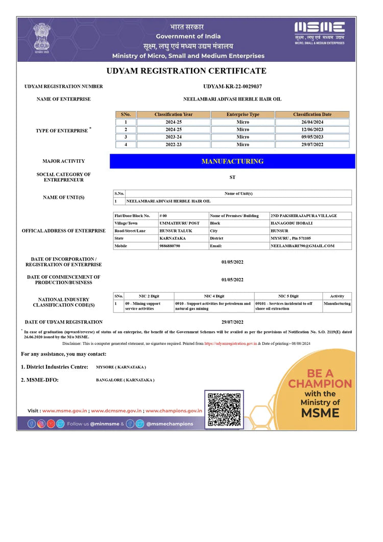 Adivasi Neelambari Herbal Hair Oil क्या होता है?